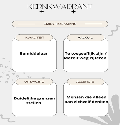 Ik ben van nature iemand die graag bemiddelt en conflicten vermijdt, maar daardoor vergeet ik soms aan mezelf te denken en zet ik mijn eigen behoeften op de achtergrond. Het is voor mij een uitdaging om duidelijke grenzen te stellen, zodat ik zowel voor anderen kan zorgen als voor mezelf. Ik merk dat ik hier meer op moet letten, zodat ik mijn energie beter kan verdelen. Wat ik echt niet kan hebben, zijn egoïstische mensen die alleen maar aan zichzelf denken. Dat verstoor de balans voor mij en ik kan daar moeilijk mee omgaan.