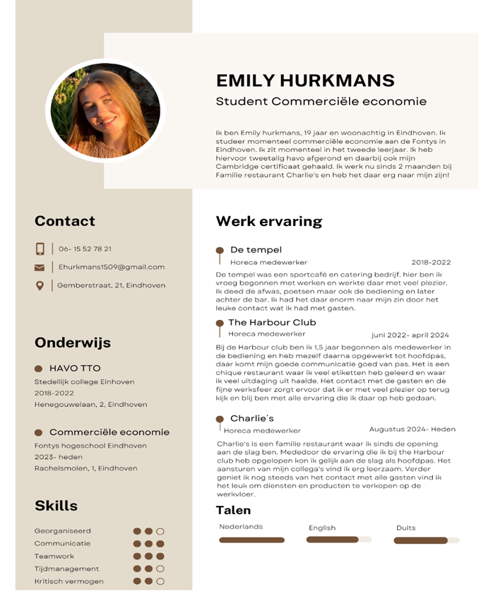 Mijn naam is Emily Hurkmans en ik ben een enthousiaste HBO studente.