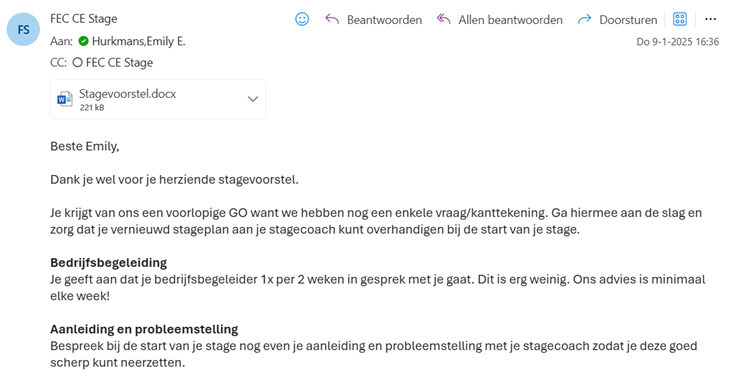 Ik zou graag met jou in gesprek gaan en ernaar kijken welke waarden ik toe kan voegen in jullie team tijdens mijn stage periode.